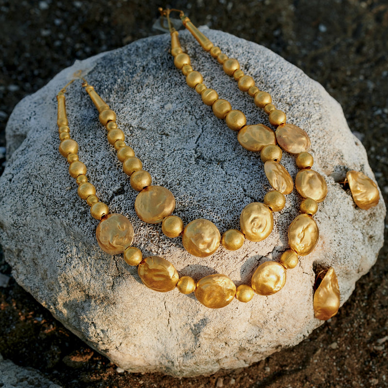 Nado's Jewellery pieces are not just adornments, they are an extension of you, offering a timeless and transcendent experience. Our designs celebrate the strength of femininity and the enduring legacy of Egyptian artistry, meticulously crafted with precious stones, pearls, and asymmetrical arrangements inspired by the beauty of nature to cater to the modern woman's taste.