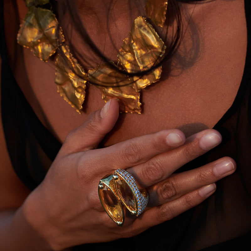 Family-founded and operated, established in 2019, sibling founders Maha, Youssef, Dina and Mostafa El Sharafy built Nado’s Jewellery on 4 pillars: Family, Biomorphism, Gold and Sustainability. The Nado’s aesthetic takes its cues from nature, creating free-flowing forms that are abstract but not random, fluid but not chaotic, and ethereal but rooted in reality.